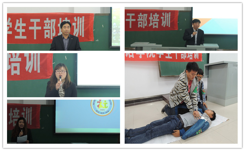 本次大会共分三部分:第一部分由学院领导做关于本次培训的重要意义、学生干部角色定位,应具备的能力、素质等方面进行培训。第二部分学院各学生机构有关负责人做学院学生干部组织结构详解。第三部分由学院青年志愿者协会做关于应急救护常识培训。大会第一部分,首先,由赵亮书记做了学生干部培训动员报告,解读了学生干部培训的重要意义和目地。接着由郑鲜日院长针对学生干部的界定,作用和使命的问题进行了专题讲话。郑院长以幽默风趣的言语生动而又形象的例子,深刻简易的道明了学生干部的职责,让学生干部们对于自己的责任有了重新的思考。随后,院学生工作办公室主任兼团委书记裴香花老师做了关于学生干部应具备的素质和能力的专题讲解。裴主任语重心长的话语,生动的实例,再一次让学生干部们对自己应具备的素质和能力有了更深刻的认识。