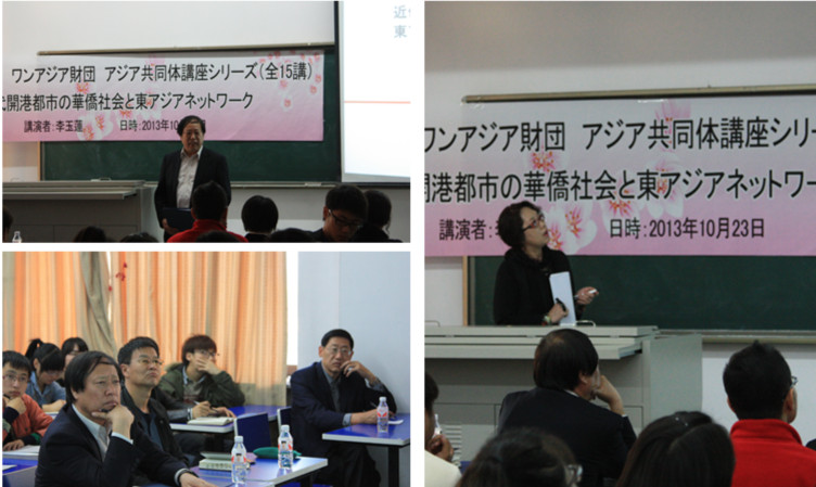 10月23日下午三点半,由“一般财团法人——亚洲财团”资助,外国语学院承办的"亚洲共同体"系列讲座第二讲在综合楼618举行。讲座由日语语言文学学科主任李东哲教授主持,李玉莲副教授作了题为"近代开埠都市的华侨社会与东亚网络"的专题讲座。