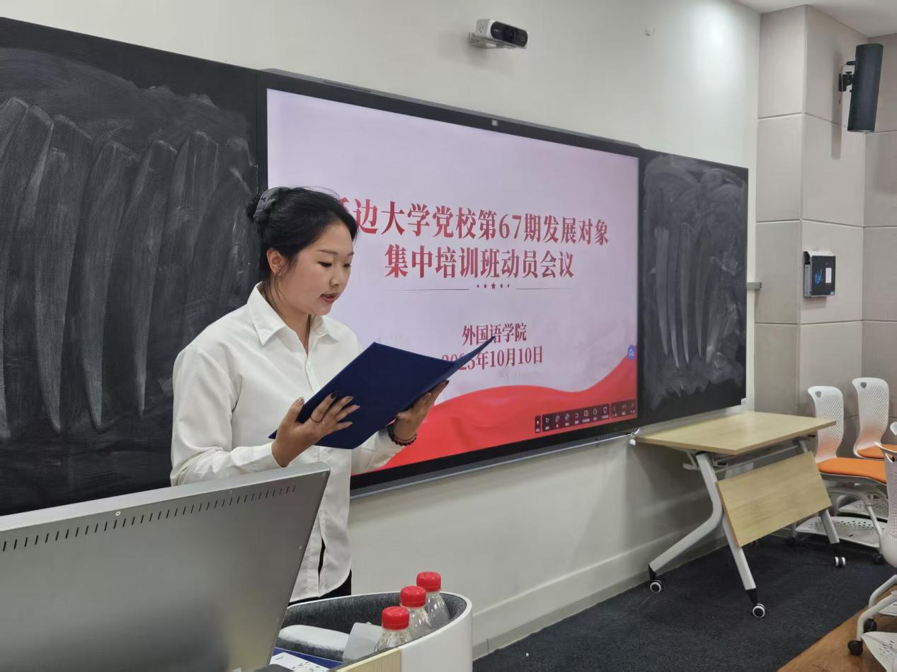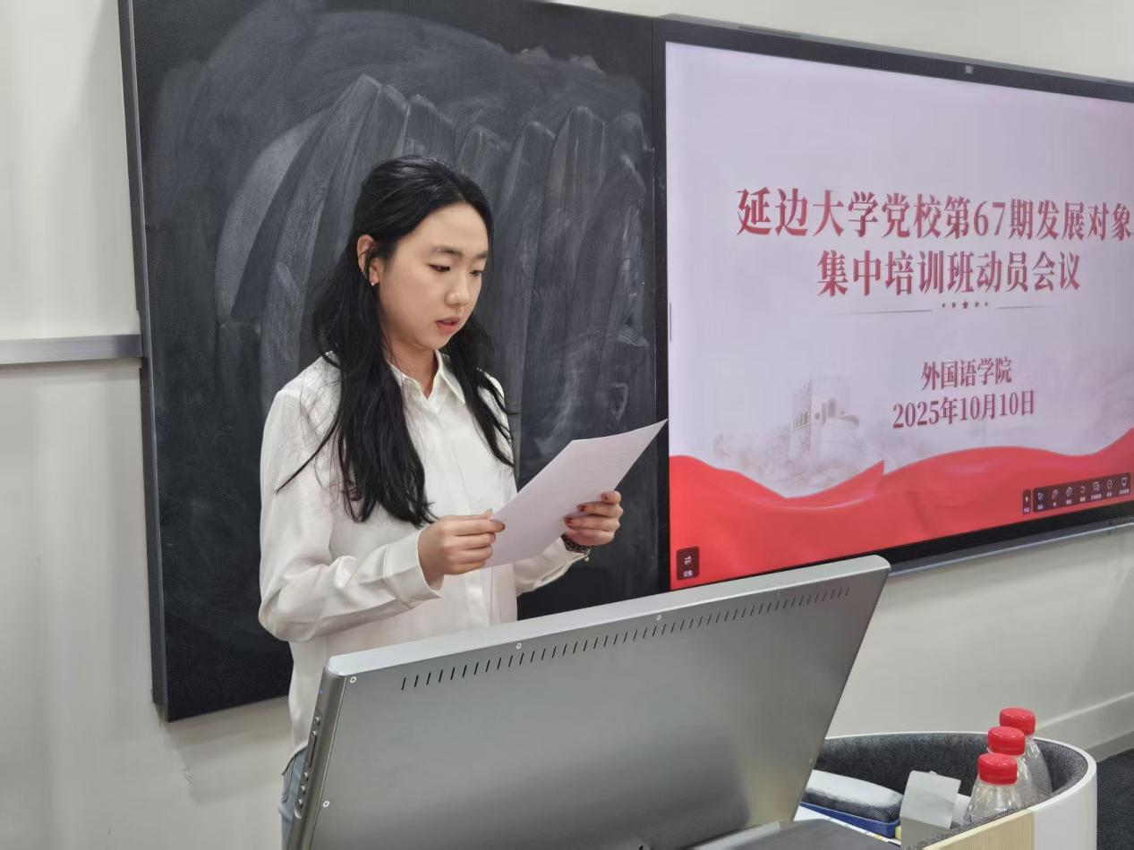会议伊始,郭鲜丹就本次培训班课程的学习要求、考核内容及形式进行介绍,强调了培训及考试纪律,告诫学员要遵守纪律,认真学习,严格按照培训要求,以高度责任感投入到学习中。随后,由延边大学党校第66期发展对象集中培训班优秀学员曹冬艳发言,她分享了党校学习的思想体会和学习经验,鼓励新学员珍惜此次学习机会,在党校学习过程中不断提升自身的政治素养和理论水平。接下来,第67期培训班学院学员杨涵雯作代表发言,她表达了对参加此次培训的期待与决心,表示会严格遵守培训纪律,认真完成各项学习任务,努力提升自己的思想认识和政治觉悟,以实际行动向党组织靠拢。