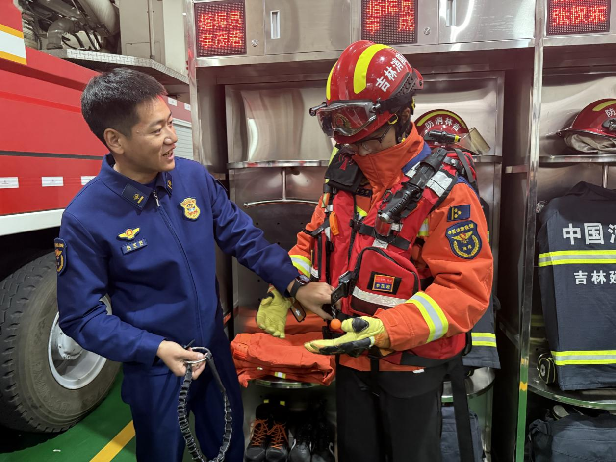 在消防装备展示区,消防员介绍隔热服、抢险救援服、防化服等装备的功能与适用场景,学生还亲身体验试穿消防救援服。“救援服比想象中重太多,穿上后行动受限,才明白消防员冲进火场要克服多大困难,他们太伟大了!”“这次试穿让我对消防员工作更敬佩,也知道消防安全要从自身、细节做起”,学生们纷纷感慨。