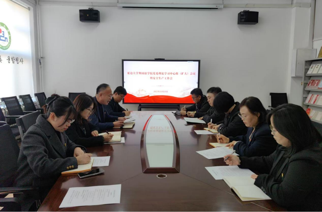 11月11日下午,延边大学外国语学院召开党委理论学习中心组(扩大)会议暨安全生产工作会。学院党委书记徐炳煊主持会议,学院党委委员、各基层党组织书记参加会议。