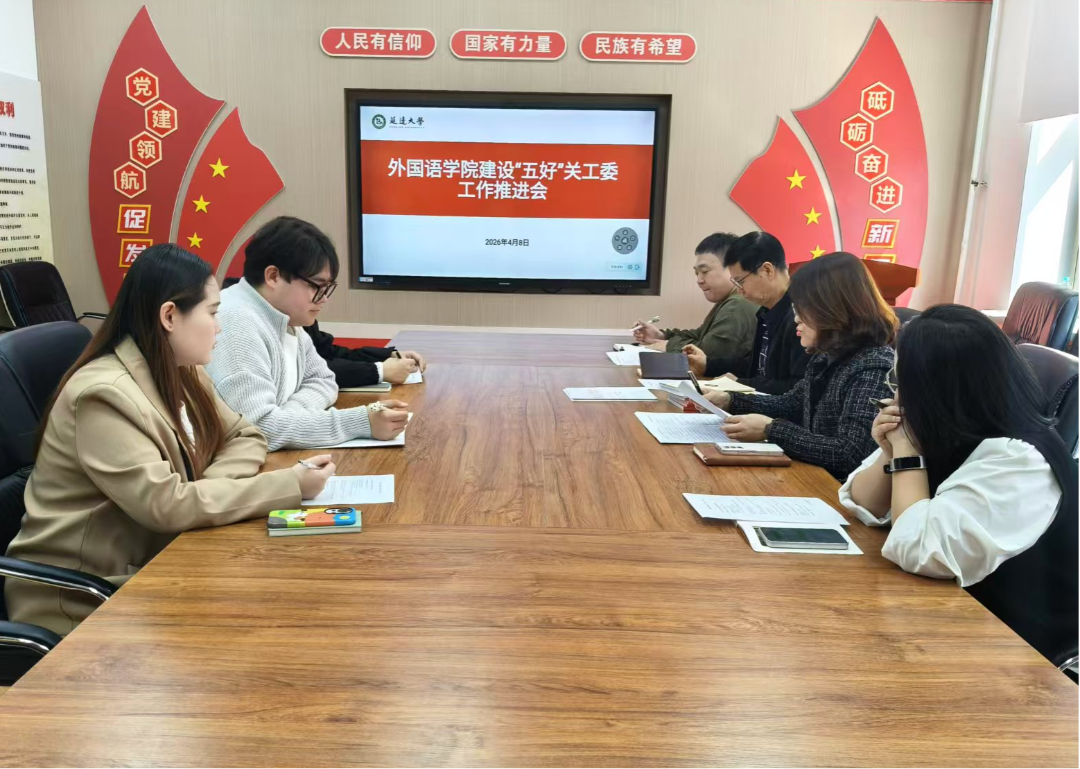 为深入贯彻落实学校关工委工作部署,扎实推进“五好”关工委建设,进一步提升学院关心下一代工作质量,4月8日,外国语学院举办“五好”关工委建设工作推进会议。学院党委副书记兼关工委主任郑仁顺、专职关工委主任金永洙,以及全体关工委委员、学生委员参加会议,会议由郑仁顺主持。