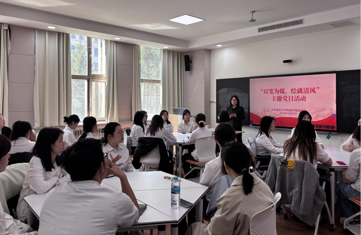 为深入推进廉洁教育,厚植学生党员廉洁自律思想根基,4月18日,外国语学院举办“以笔为媒,绘就清风”廉洁教育主题党日活动。学院党委副书记郑仁顺带领学生党员参与活动,以沉浸式体验传递廉洁力量,凝聚青春奋进共识。