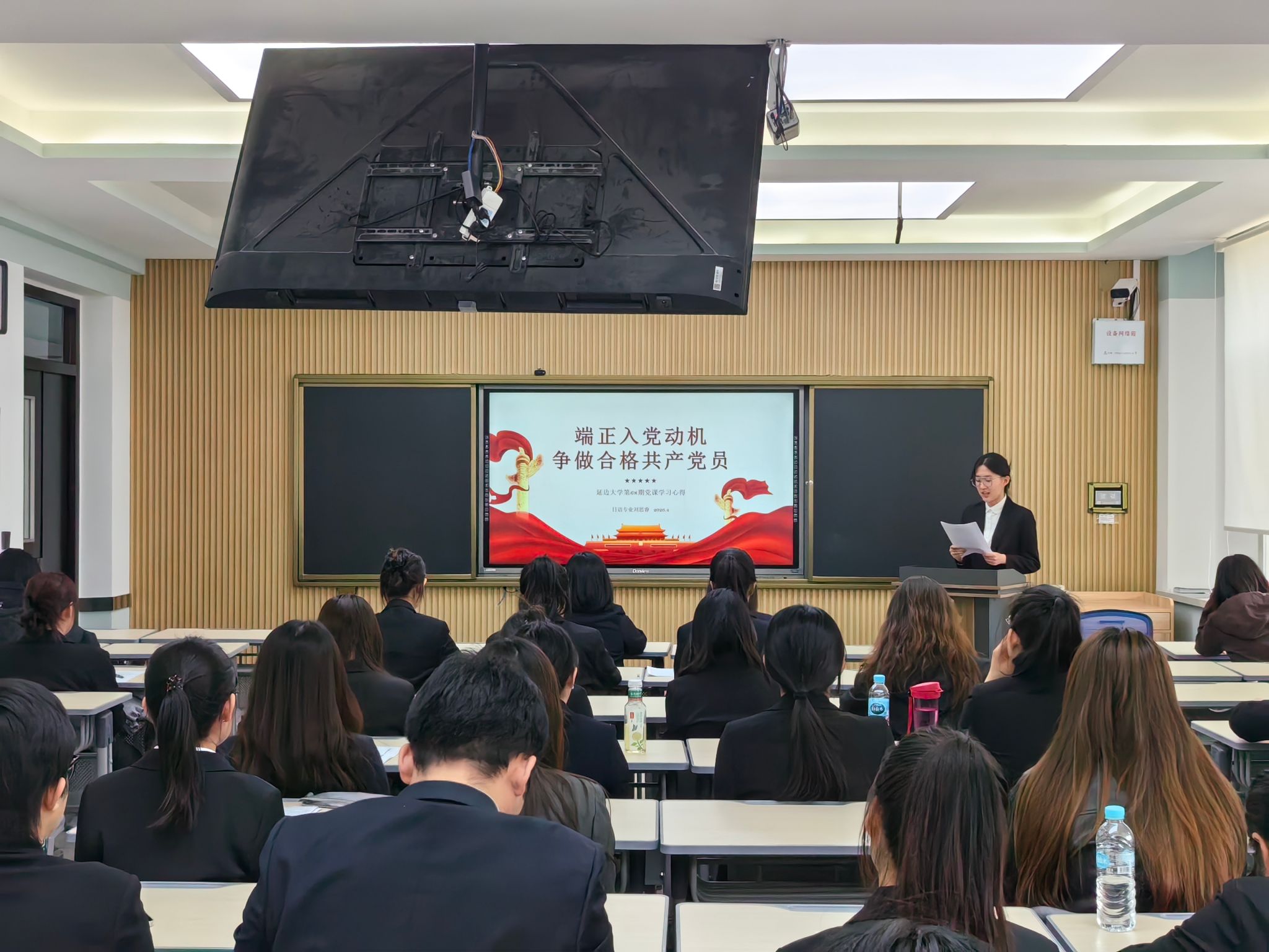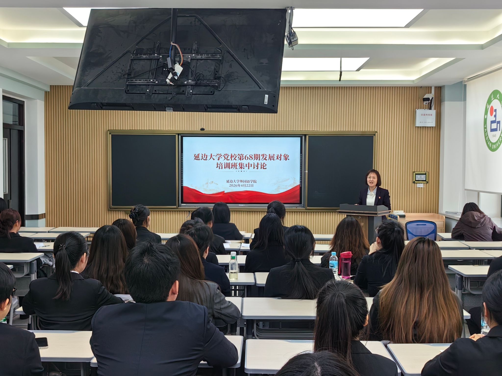 为深入学习贯彻习近平新时代中国特色社会主义思想,严格落实党员发展工作要求,引导发展对象筑牢思想根基、端正入党初心,4月22日,延边大学外国语学院开展校党校第68期发展对象培训班集中学习研讨暨考前动员大会。校党委专职组织员金玉丹、外国语学院党委组织员兼党办主任郭鲜丹出席会议,学院党务办公室李一冰主持会议,全体第68期党校发展对象学员参加。