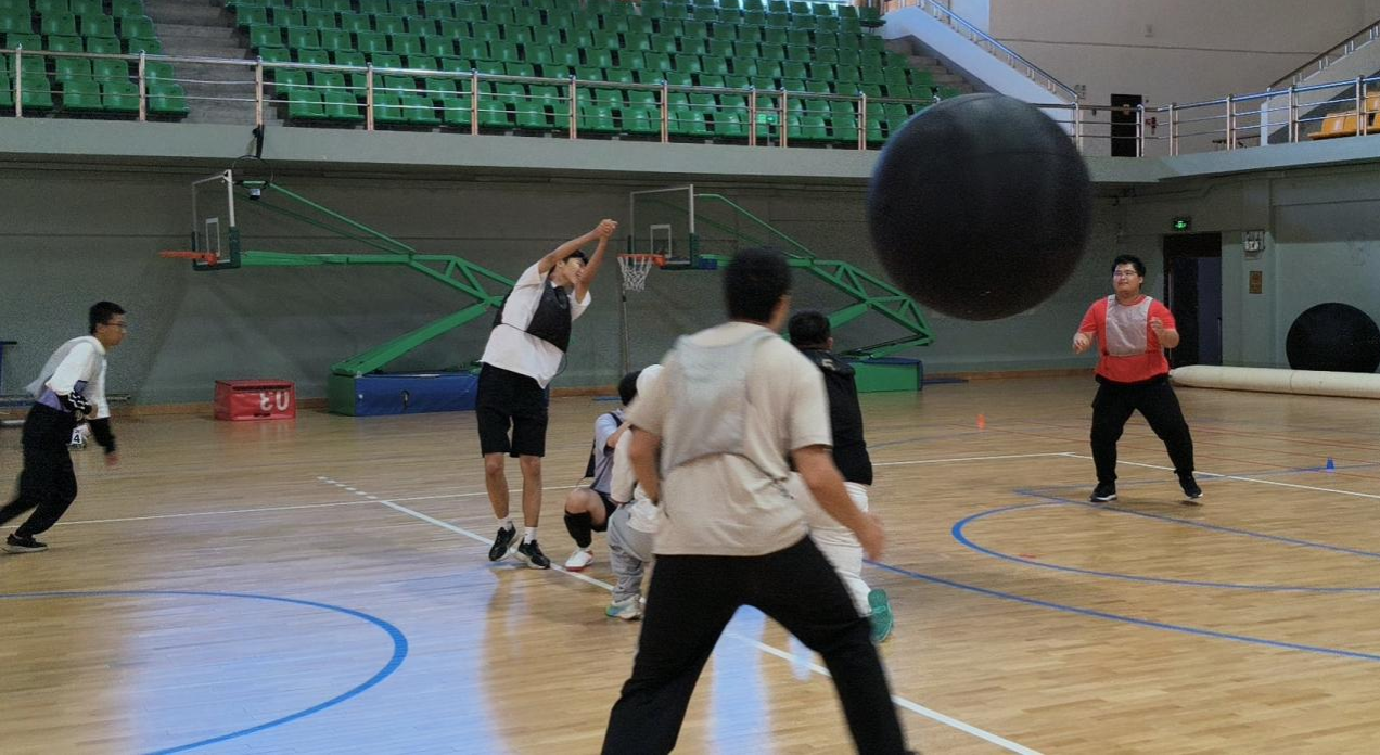 活动由辅导员金丹老师及专业团总支带队,2025级全体新生积极参与。健球社团骨干担任指导讲师,通过演示与讲解相结合的方式,向同学们介绍了健球的基本规则和团队配合要领,帮助大家初步了解这项富有趣味与策略的运动。在实操环节中,新生们在社团成员的指导下逐步掌握持球、传球等基本动作,并通过分组练习提升了团队默契。现场气氛轻松热烈,各班同学在互动中迅速熟悉,展现出朝文新生的活力与凝聚力。随后的实战比赛将活动推向高潮,各队团结协作、灵活应对,场边加油声此起彼伏。整场活动不仅锻炼了学生的身体素质,也在愉悦的氛围中增强了团队意识与集体荣誉感。