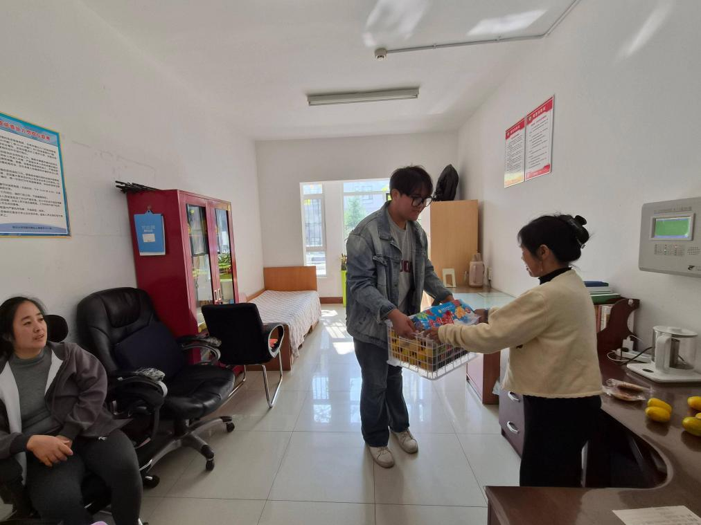 温情不止于此。在走访学生之余,老师们也特地看望了辛勤工作的宿管阿姨等后勤服务人员,为她们送上了节日的祝福与慰问品。