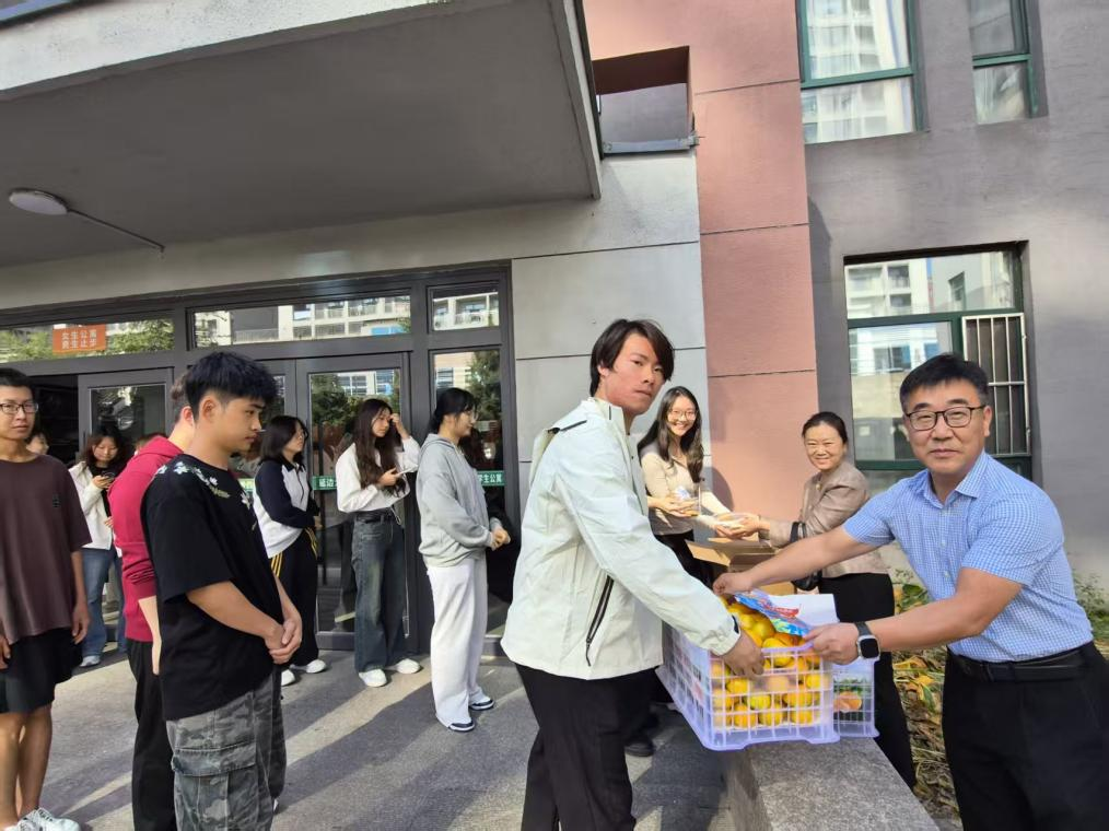 活动期间,老师们深入学生群体,为同学们送上了精心准备的月饼与水果,并致以节日的诚挚问候。一份份饱含情意的礼物,不仅承载着党组织对学生的深切关爱,更营造了温馨融洽的节日氛围,让远离家乡的学子们感受到了家一般的温暖。