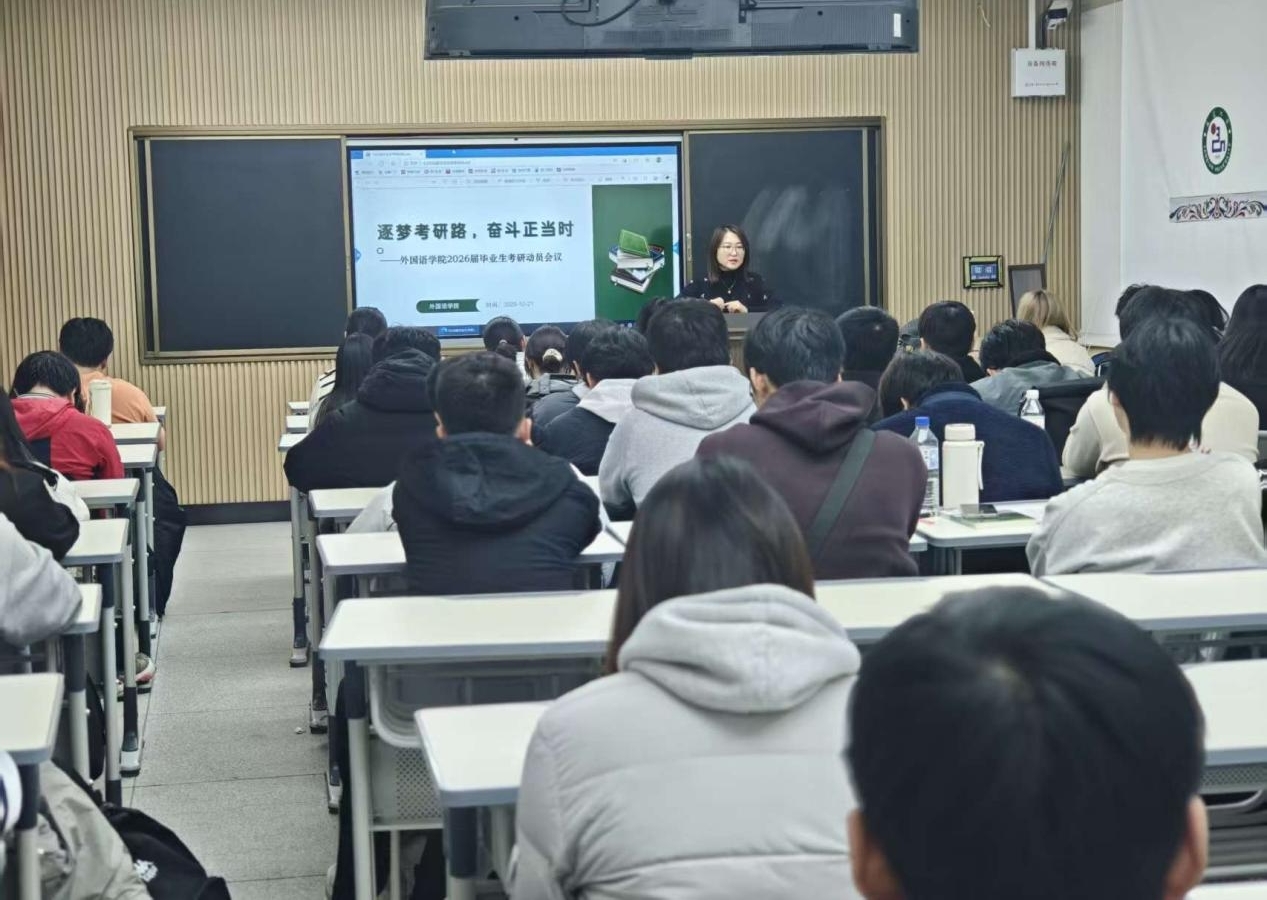 为帮助2026届毕业生明确考研目标、掌握备考方向,进一步激发学生考研热情,10月21日,外国语学院组织召开2026届毕业生考研报名动员主题班会。学院党委副书记郑仁顺出席班会并担任主讲人,2026届全体毕业生参会。