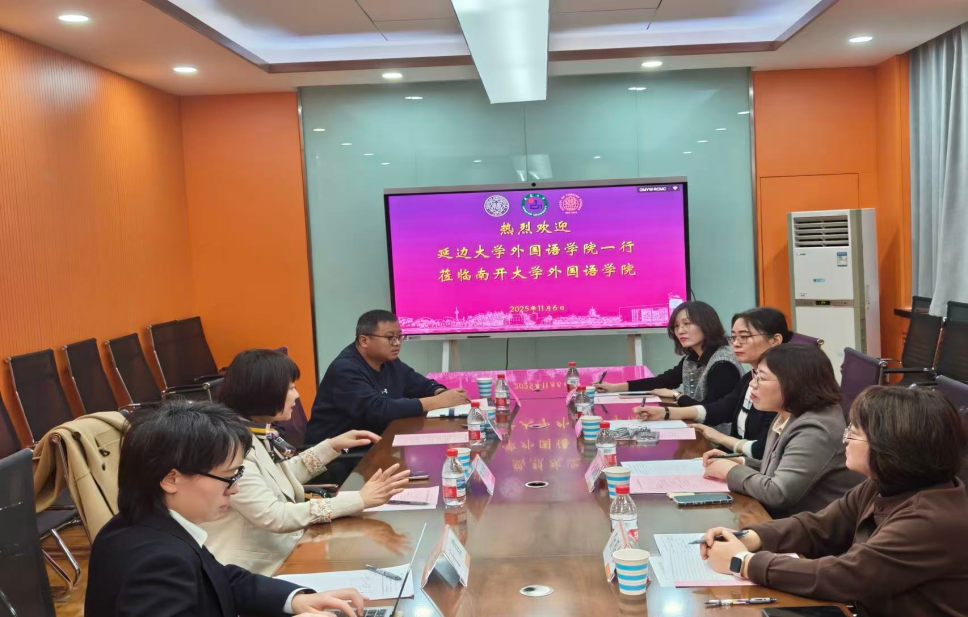 2025年11月6日至7日,延边大学外国语学院副院长姜娜、日语语言文学学科主任安勇花、日语专业主任金秀东及副主任徐瑛一行,先后赴南开大学外国语学院、天津外国语大学日语学院开展调研。期间,调研团队围绕人才培养体系构建、学科建设路径优化及科研创新能力提升等核心议题,与两所院校相关负责人及教师代表展开深入交流,重点学习兄弟院校在相关领域的先进理念与实践经验,为延边大学日语学科及外国语学院整体发展汲取有益借鉴。