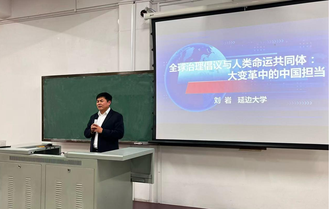11月20日下午,延边大学副校长刘岩在勤学楼205教室,以《全球治理倡议与人类命运共同体:大变革中的中国担当》为题,为外国语学院学生讲授了一堂意义深刻的专题思政课。