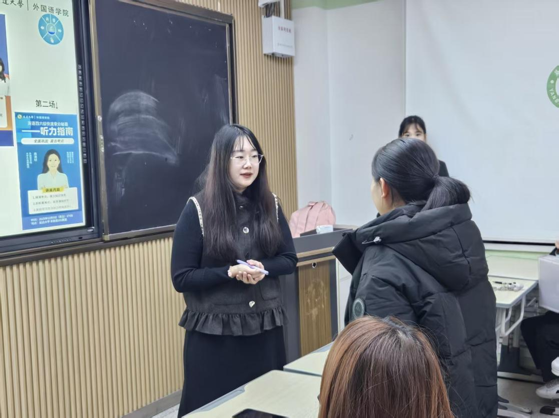 活动伊始,郑仁顺代表学院与工作室发表致辞。她强调,英语四六级成绩作为衡量大学生英语能力的重要标尺,不仅是学业发展的“基础项”,更是未来就业、升学的“加分项”,希望同学们借助此次讲座找准备考方向,实现能力突破。