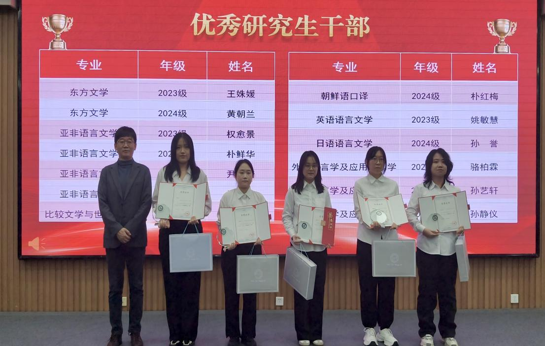 大会在庄严的国歌声中拉开序幕。学院党委副书记郑仁顺宣读了《延边大学外国语学院2024-2025学年度学生工作表彰决定》和《延边大学外国语学院“创先争优”团委表彰决定》,对涌现出的先进个人和集体予以表彰。与会领导为获奖代表颁发荣誉证书与奖品。