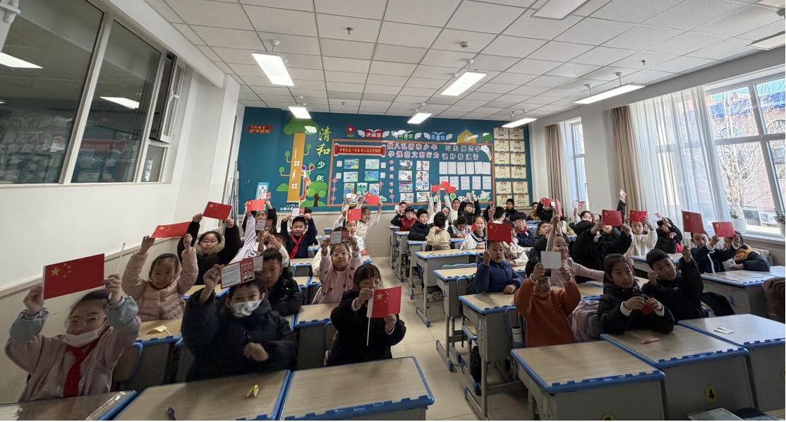 为深化青少年思想政治教育,推动社会主义核心价值观融入校园生活,12月12日上午,延边大学外国语学院“金达莱队”青年志愿者走进延河小学,开展了一场以“旗帜领航·安全筑梦”为主题的青少年公益教育活动。活动通过旗帜文化教育、交通安全讲解与志愿精神培育,引导学生们在互动体验中增强国家认同、提升安全意识、感受奉献精神,以实际行动推动思政教育生动走进小学课堂。