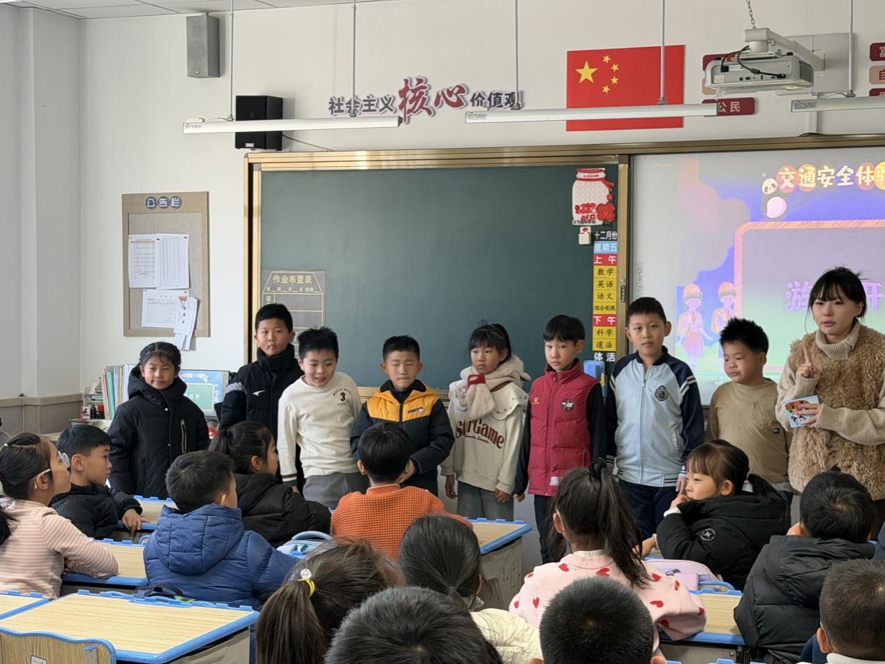 活动伊始,志愿服务团队的指导老师金春宪向同学们介绍了活动宗旨和意义,随后,志愿者们通过图文并茂的PPT,为孩子们系统讲解了党旗、国旗、军旗、团旗、队旗的象征意义与精神内涵,帮助青少年从小树立对国家和民族的归属感与荣誉感。在“交通安全小达人”互动环节,志愿者结合动画短片与情景问答,生动传授“一停、二看、三通过”等交通安全常识,让孩子们在游戏中掌握出行规范,筑牢安全防线。