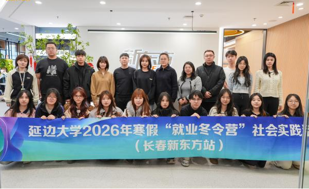 为深入落实吉林省2026届高校毕业生“寒假促就业暖心行动”工作要求,积极响应学校“职启新程 聘暖寒冬”寒假促就业专项部署,持续深化校企协同育人机制,精准拓宽外国语学院毕业生就业渠道,1月13日至15日,外国语学院朝鲜语言文学专业辅导员金丹带队,组织学院学生跟随学校招生就业处,赴吉林长春新东方培训学校开展2026年“就业冬令营”社会实践活动,让外语学子零距离对接教育行业就业市场,夯实职业发展基础。