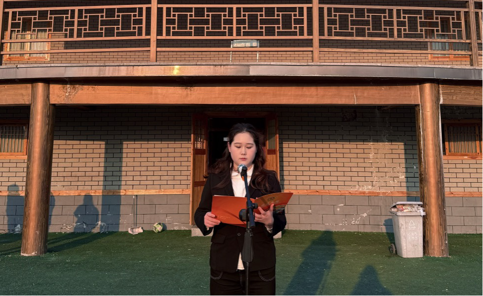 庄严的升旗仪式上,国旗护卫队步履铿锵,五星红旗随国歌冉冉升起,全体师生肃立行礼、高唱国歌,在庄严肃穆的氛围中厚植家国情怀,铸牢中华民族共同体意识。学生代表2023级俄语专业于淼以“语言为钥”发出青春宣言,倡议外语学子坚守专业初心、锤炼过硬本领,将“传薪火”的坚守与“守边疆”的担当融入血脉,以专业所长讲述中国故事、传递中国声音,让外语能力成为服务国家发展、助力学科建设的坚实支撑。