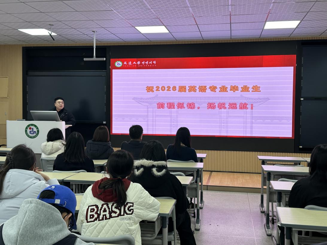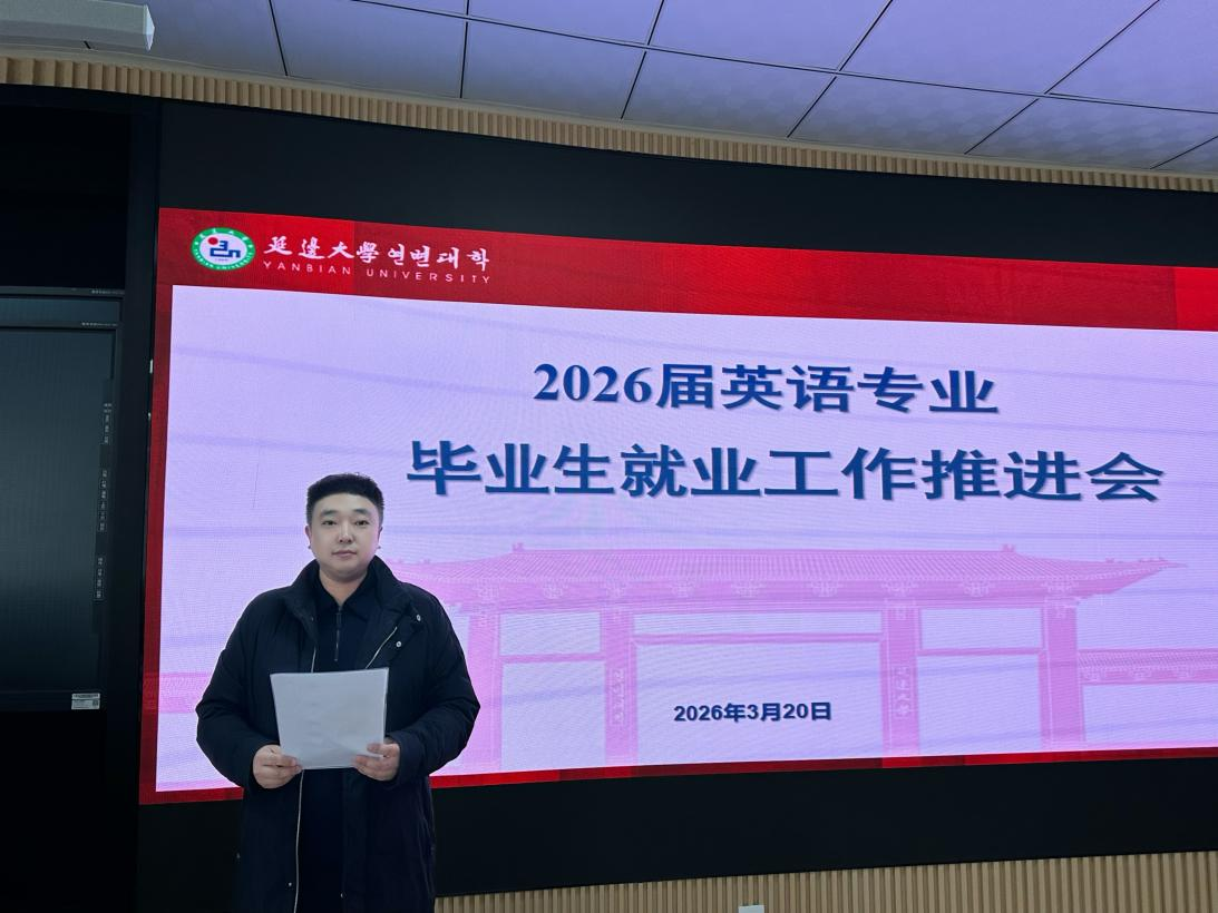 为深入贯彻教育部及学校关于高校毕业生就业工作部署,抢抓春季招聘关键窗口期,全力推动2026届英语专业毕业生更高质量更充分就业,3月20日,延边大学外国语学院英语专业在求真楼501教室召开2026届英语专业毕业生就业工作推进会。英语专业教师党支部书记韩强、副主任温丽婷、2022级教育班班主任南美兰、2022级起点班班主任孙鹤、辅导员金春宪以及全体2022级毕业生参会。会议由辅导员金春宪主持进行。