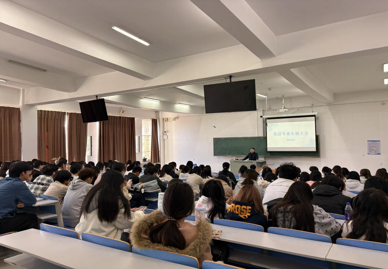 英语专业召开23级至25级全体学生大会,辅导员金春宪、金晨龙共同参会。会上,金春宪老师结合校园实际,围绕反诈安全、宿舍安全、心理健康三大关键领域展开重点强调,用真实案例剖析网络诈骗、校园贷等常见陷阱,讲解实用防范方法;明确宿舍用电、消防与卫生规范,严禁违规电器与私拉乱接电线;引导学生科学调节情绪、积极面对压力,主动寻求支持与帮助。金晨龙老师重申安全与健康底线,并作出工作承诺,愿以耐心陪伴与用心指导,做学生学习上的引路人、生活中的贴心人,助力同学们度过充实而有意义的大学生活。