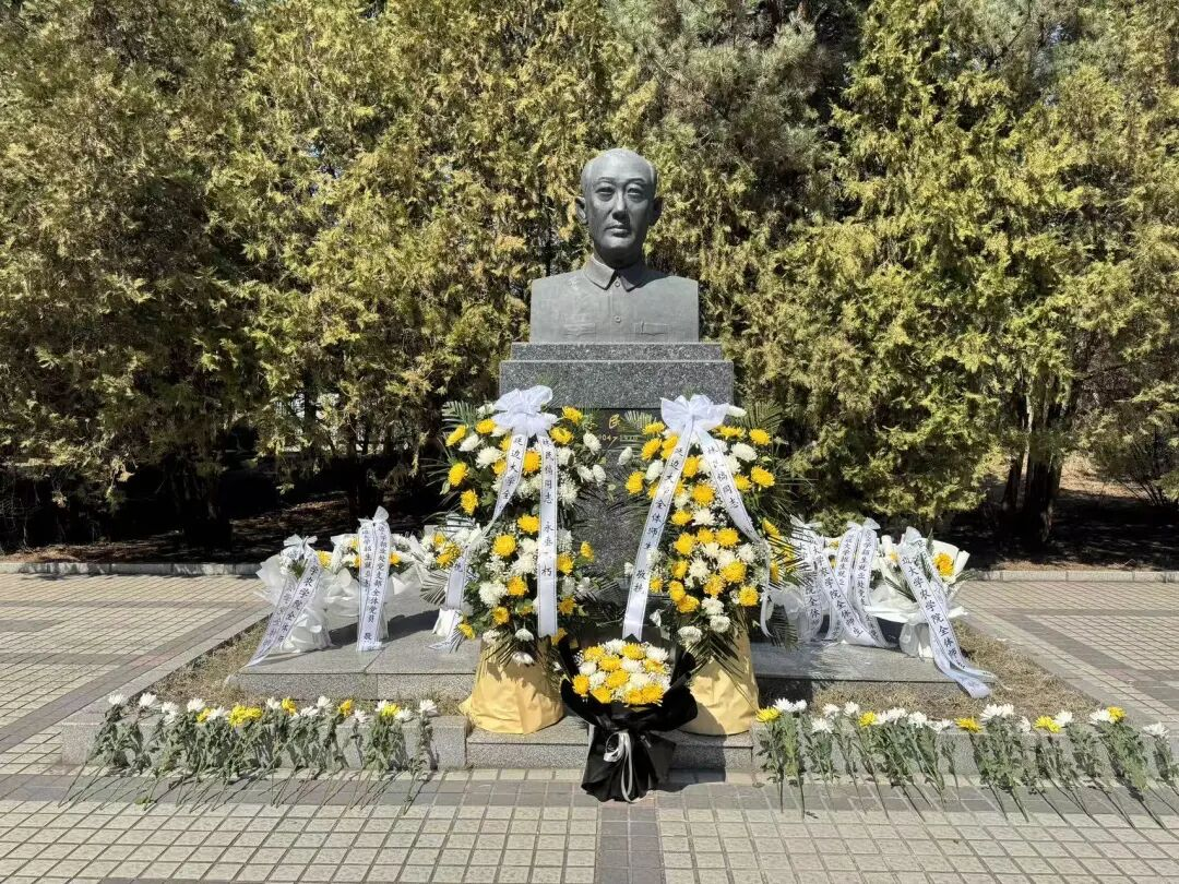 祭扫现场庄严肃穆,松柏苍翠挺拔,微风轻拂间,更添追思之情。团员代表们身着整洁的服装,怀着无比崇敬的心情列队肃立,神情凝重。活动伊始,全体人员向建校先贤默哀致敬,以此表达对先贤们栉风沐雨、薪火相传,为学校建设发展倾注心血的深切缅怀与崇高敬意。默哀完毕,团员代表上前敬献花篮,整理花篮缎带,每一个动作都饱含着对先贤的敬仰之情,彰显着青年一代对校史精神的敬畏与传承。