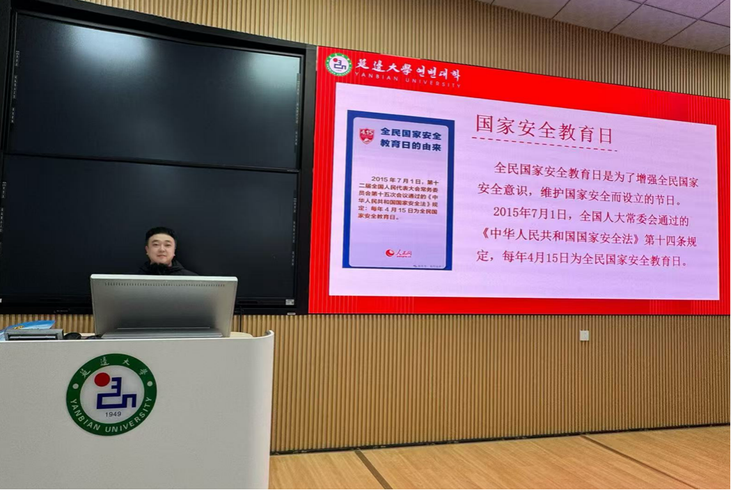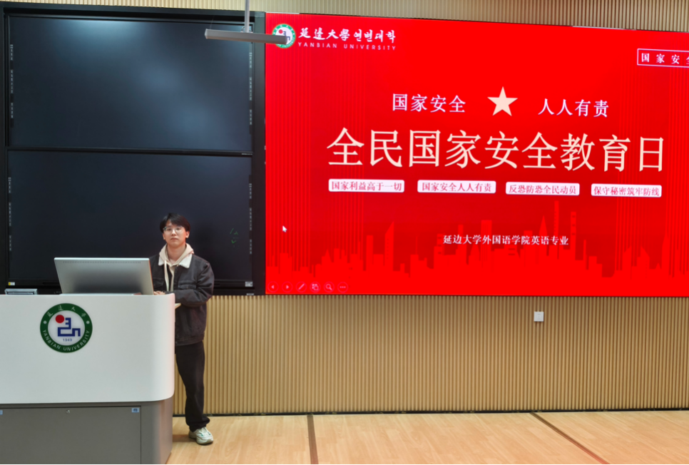 为深入学习贯彻总体国家安全观,增强大学生国家安全意识和法治观念,在第八个全民国家安全教育日来临之际,4月13日,外国语学院英语专业在综合楼101教室召开全民国家安全教育日专题教育活动。英语专业辅导员金春宪、金晨龙出席会议,英语专业全体学生参会。