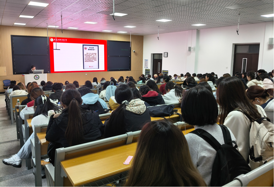 随后,金晨龙老师就维护国家安全的具体义务、网络信息安全与日常行为规范进行细致讲解。他重点解读《中华人民共和国国家安全法》相关条款,明确危害国家安全的常见行为,普及政治安全、国土安全、军事安全、经济安全、网络安全、生态安全等重点领域安全知识,并结合校园与生活场景提醒同学们规范网络言行、做好涉密信息防护、谨慎发布社交动态,同时公布12339国家安全机关举报受理电话,引导大家提高风险辨别能力,坚决不触碰法律红线,以实际行动守护国家秘密与社会安全稳定。