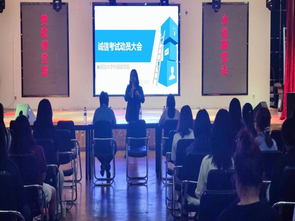 为规范考风考纪,增强学生诚信意识,加强我院学风建设,延边大学外国语学院于2021年6月9日下午两点半在二食堂三楼活动中心举办了诚信考试动员大会。本次会议由学院团委郭鲜丹书记主持。
