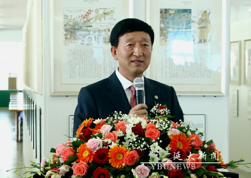 2019年9月21日中午,我校与北京大学共同举办的大型反战和平主题漫画展在逸夫图书馆五楼开展,同时举行了漫画图书阅览室揭牌仪式。延边大学校长金雄、日本明治大学校长土屋惠一郎,明治大学、北京大学和我校相关部门负责人、教师代表出席活动。活动由延边大学外国语学院院长朴玉明主持。