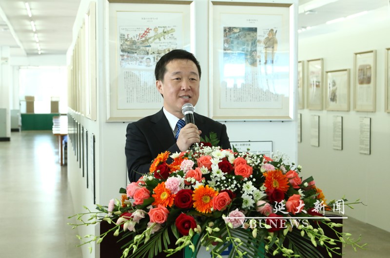 延边大学外国语学院党委书记全永男对漫画图书阅览室的成立过程进行了介绍。金雄、土屋惠一郎和北京大学外国语学院日语系主任金勋先后致辞,大家一致表示,举办大型反战和平主题漫画展是为了让广大师生以史为鉴,铭记历史,让和平反战的思想深入每个人心中。他们希望广大青年学子常怀责任心与使命感,进一步树立好正视历史、珍爱和平的思想观念。