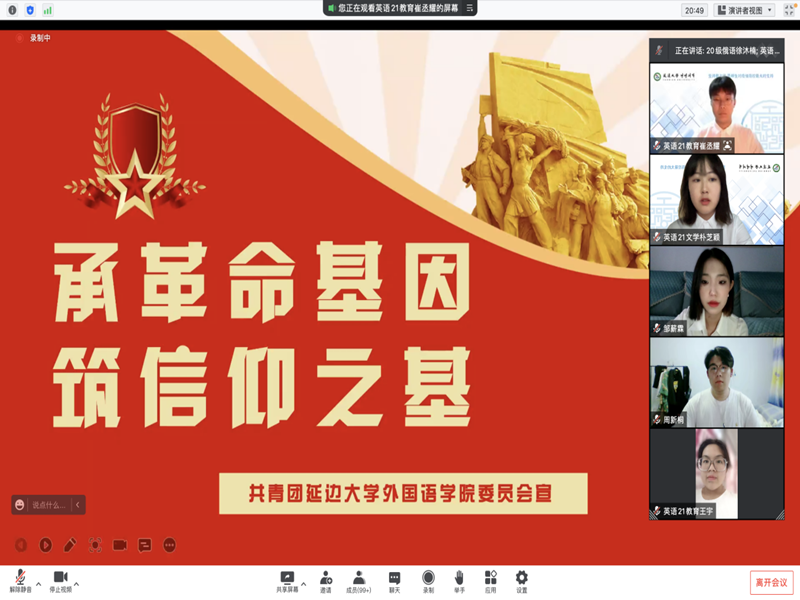 外国语学院于2022年8月7日下午3:50以腾讯会议为平台开展了学生骨干培训之党史学习教育。外国语学院各团总支书记出席了本次党史学习教育,学院学生会、各专业团总支以及班干部参加并接受本次党史学习教育,活动由2019级日语专业朴妍主持。