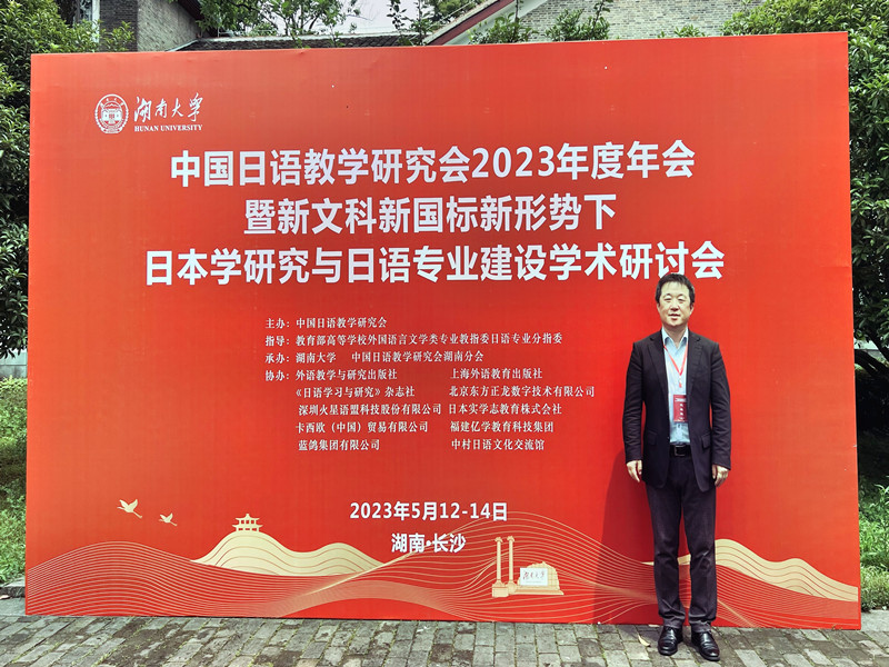 2023年5月12日-14日,由中国日语教学研究会主办,教育部高等学校外语教学指导委员会日语专业教学指导分委员会协办,湖南大学、中国日语教学研究会湖南分会联合承办的“中国日语教学研究会2023年度年会暨新文科新国标新形势下日本学研究与日语专业建设学术研讨会”在湖南大学召开。我院党委书记、日语笔译学科主任全永男应邀参会。