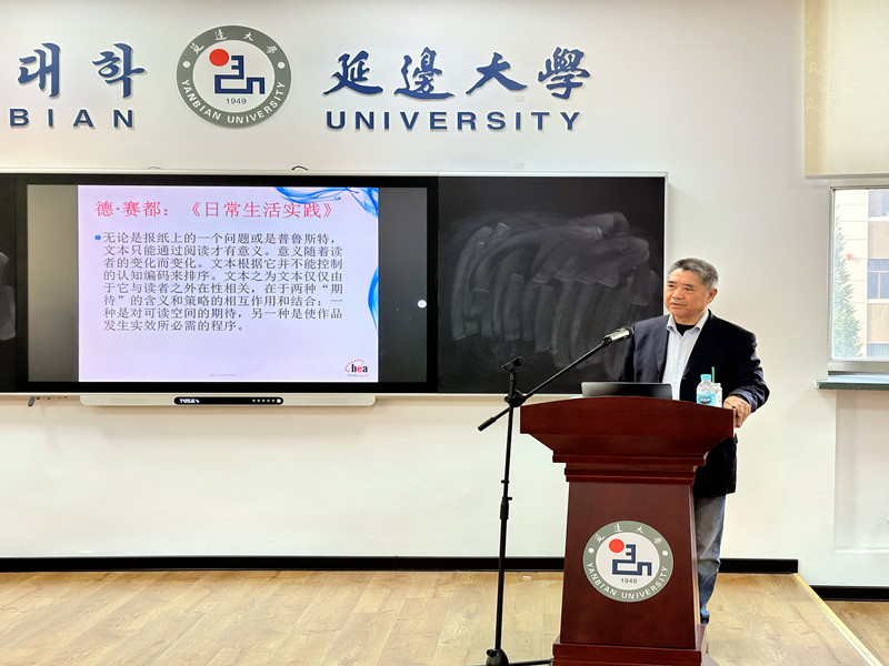 2023年9月26日下午,应外国语学院邀请,延边大学荣聘教授、清华大学资深教授、博士生导师陈永国教授作了题为“西方阅读史中的人文学阅读”的讲座。讲座由我院教授朴玉明主持,延边大学外国语学院教师及本硕博研究生共计50余人聆听了讲座。