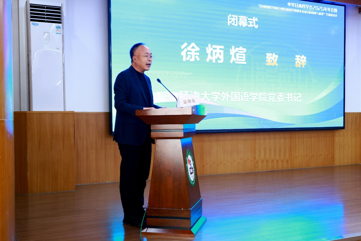 闭幕式由中华日本哲学会新任法定代表人兼秘书长、延边大学外国语学院朴银姬教授主持。林美茂教授在闭幕致辞中表示,本次会议是“一次圆梦之旅”,延边独特的文化氛围与延边大学对学会发展的高度重视、支持及本次会议的精心组织为学者提供了高质量的交流平台。他特别指出,近年来青年学者群体的成长显著推动了学界研究范式的转型,中国学界正在形成具有主体性的日本研究路径。延边大学外国语学院党委书记徐炳煊在致辞中充分肯定年会的学术价值,表示学院将一如既往支持日本哲学与区域国别研究的交叉创新,期待与学界共同推动该领域向更深层次发展。