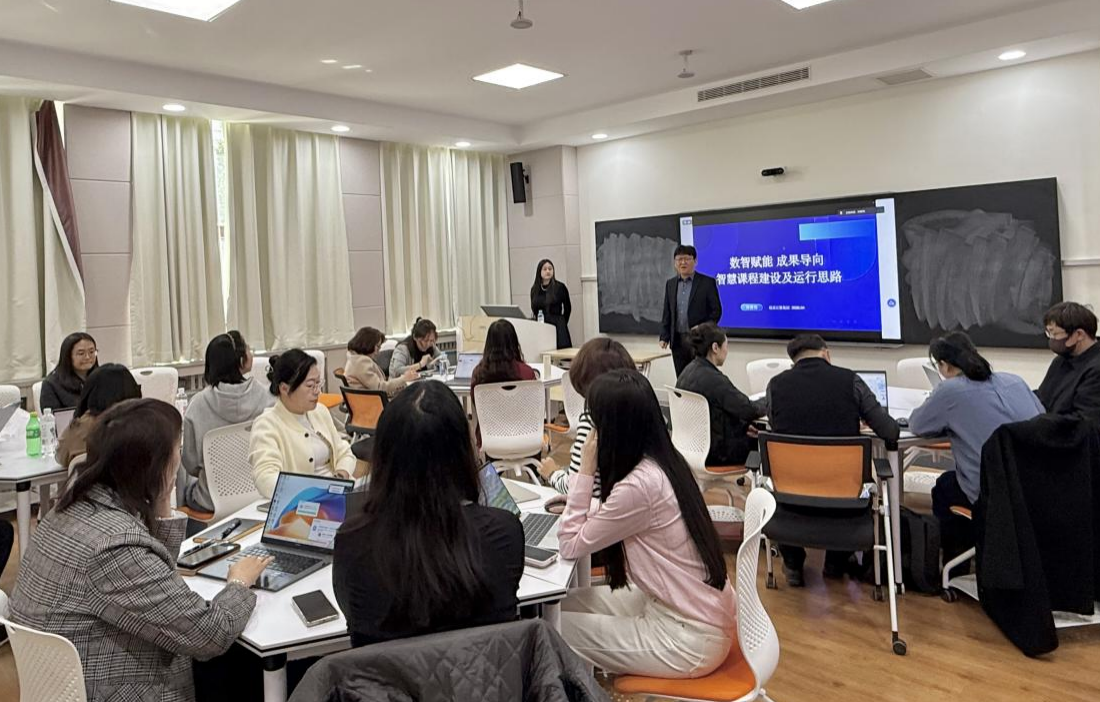 为深入推进教育数字化转型,全面提升教师智慧教学与AI技术应用能力,4月8日下午,外国语学院举办教师AI能力提升与教学创新实践专题培训。本次培训由刘一副院长主持,学院全体教学管理人员及部分专任教师参加。